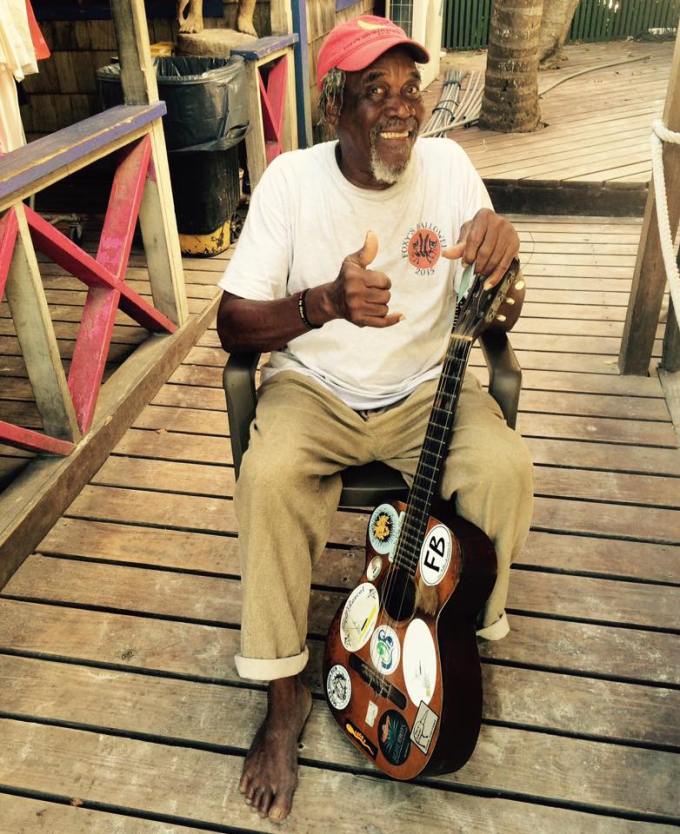 I was surprised this bar was the choice for the book, seeing as The Painkiller was created on Jost Van Dyke at Soggy Dollar Bar, but researching the island you find out just how legendary Foxy is, he’s the hub of the island, with connections throughout! Turns out I’d booked accommodation at his son’s place, thought that might prove useful in getting a lift to the bar, or establishing Foxy’s whereabouts, but instead I went it alone! Having walked the couple of miles from White Bay to Great Harbour I arrived at about 4pm, and there was Foxy at the entrance with his guitar, cocktails at this point could wait! Foxy is quite the character, nearly 80 he’s full of energy, tell him where you’re from and he’ll recite a poem about your homeland, or if you’re lucky some Calypso. He’s been to Buckingham Palace to meet Princess Anne, the photos are proudly displayed in the bar.